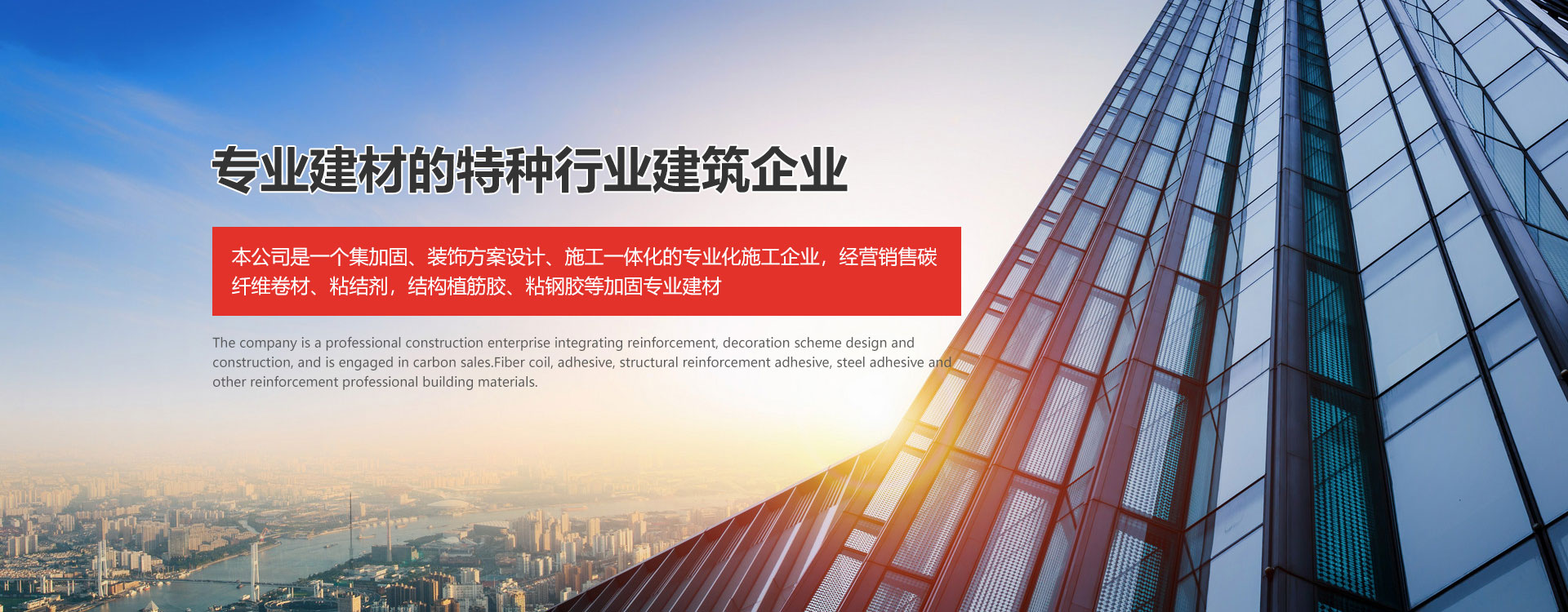 本公司是一个集粉色视频在线观看高清观看、装饰方案设计、施工一体化的专业化施工企业,经营销售碳纤维卷材、粘结剂,结构植筋胶、粘钢胶等粉色视频在线观看高清观看专业建材的特种行业建筑企业。